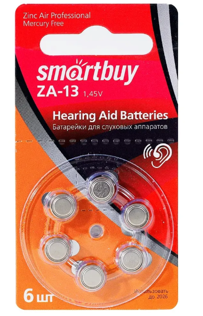 Батарейка для слуховых аппаратов Smartbuy ZА-13 BL6