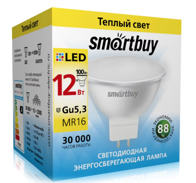 Лампа светодиодная SMARTBUY GU5.3-12W/3000