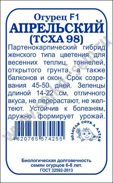 Огурец Апрельский (ТСХА-98) б/п /Сотка/ 10шт