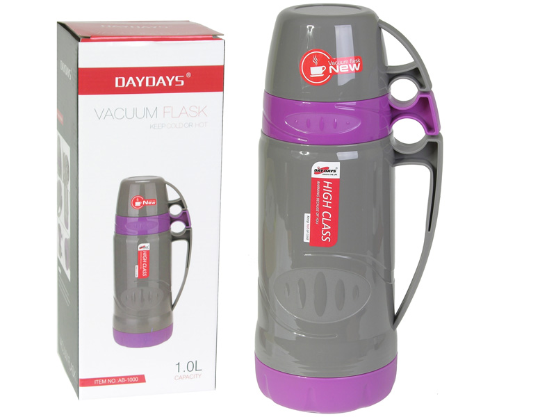 Термос пласт. со стекл колбой 1л, + 2 кружки, LF60Т100