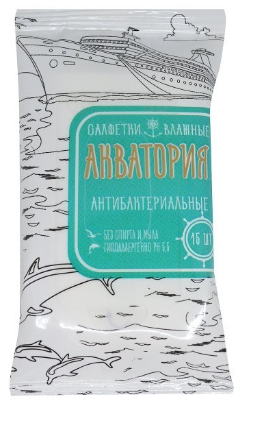 Салфетки влажные 15шт, АКВАТОРИЯ Антибактериальные (057535)/1/15