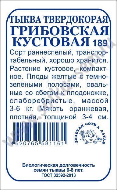 Тыква Грибовская кустовая б/п /Сотка/ 2г.